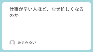 効率化の正体仕事が早い人ほど、なぜ忙しくなるのか 「もっと効率を上げれば、定時で帰って自分の時間が持てるはず」そう信じて、Excelの関数を学び、タスク管理を徹底し、人一倍スピードを意識して仕事を終わらせてきた。それなのに、なぜか以前よりも仕事量が増え、皮肉にも一番忙しくなっている……。そ... 2026.02.07効率化の正体