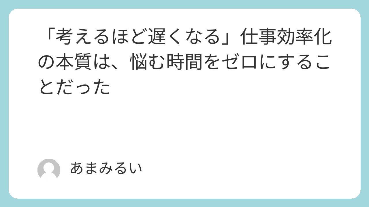 1. 効率化の正体は「悩まない仕組み」を作ることだった