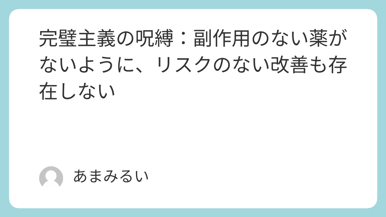 リスクや副作用は「避けるべき悪」ではなく、「改善の対価として支払うべき正当なコスト」です。この視点を持つだけで、不条理な指摘に対しても、「これは構造的に避けられないコストだ」と客観的に自分を守れるようになります。