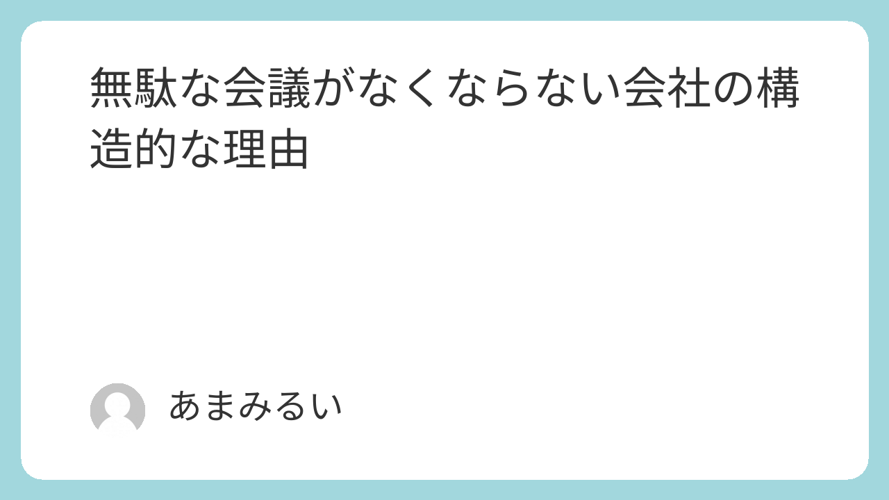 それぞれの行動は、この環境の中では合理的です。でも全員が合理的に動いた結果、週に数時間が「成果を生まない会議」に消えていく。